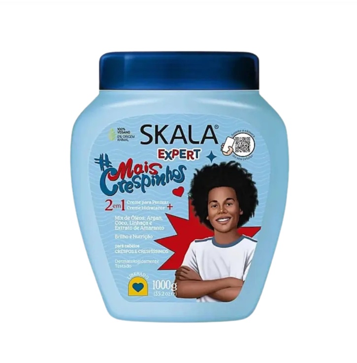 El Tratamiento Skala Mais Crespinhos 1Kg gestá especialmente formulado para el cuidado de cabellos crespos y con textura crespa (tipo 4). Este tratamiento suave y nutritivo es totalmente vegano y a prueba de CG, y ayuda a hidratar, suavizar y fortalecer el cabello sin apelmazarlo.