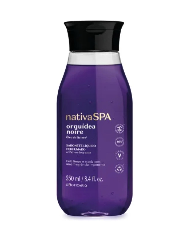 Con la fragancia característica de la línea, este jabón líquido de Nativa Spa ofrece la imponente fragancia de Orquídea Noire en un floral amaderado, para una explosión de fragancia durante tu baño. Una experiencia de lujo para escapar de la rutina y experimentar todo lo que puedes sentir en su máxima expresión.